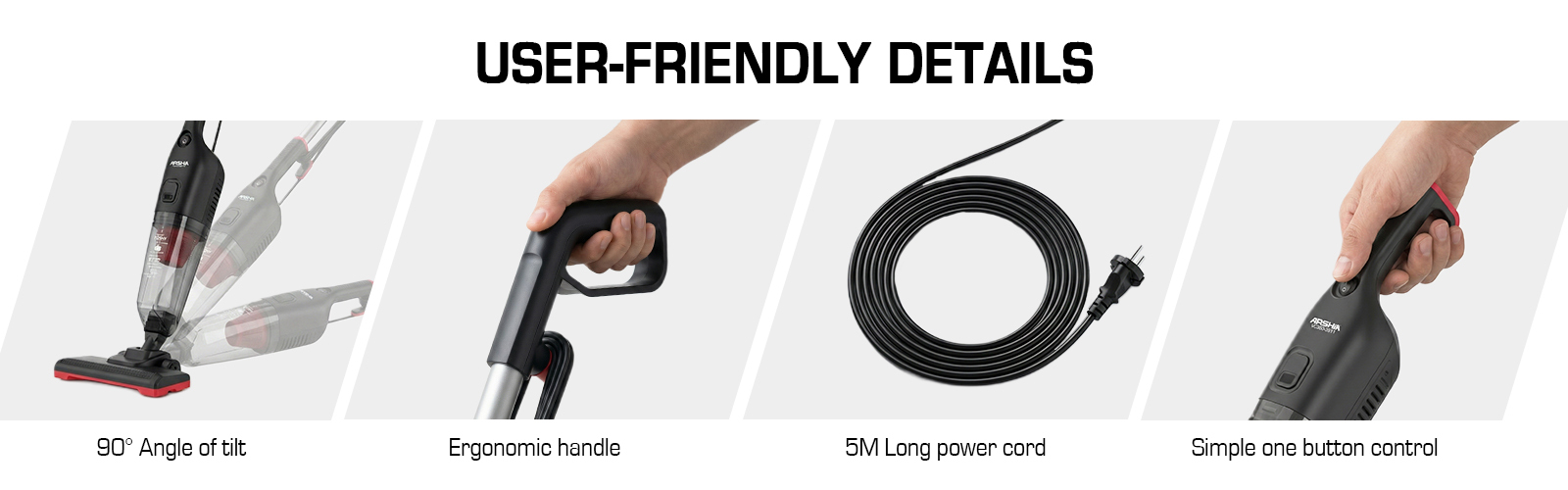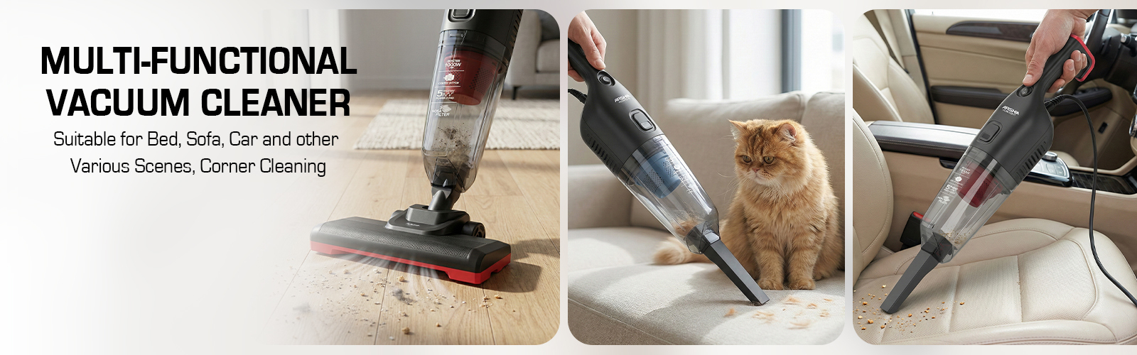 Arshia 3-in-1 Stick & Handheld Vacuum Cleaner (Black&Red)