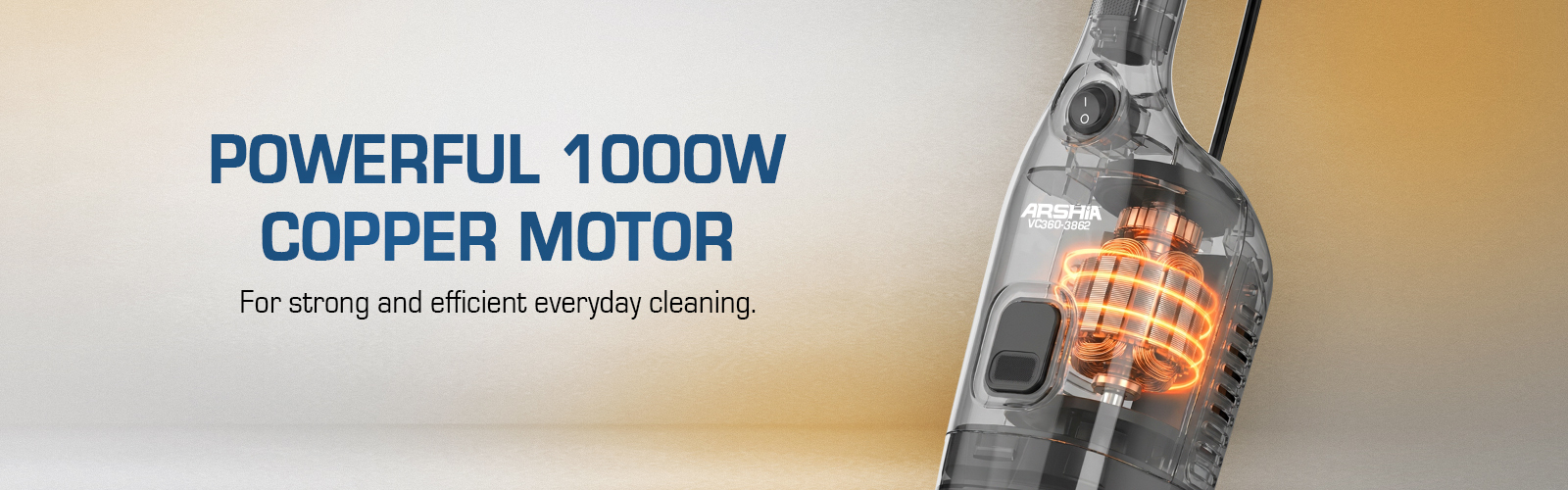 Powerful 1000W motor for strong and efficient everyday cleaning