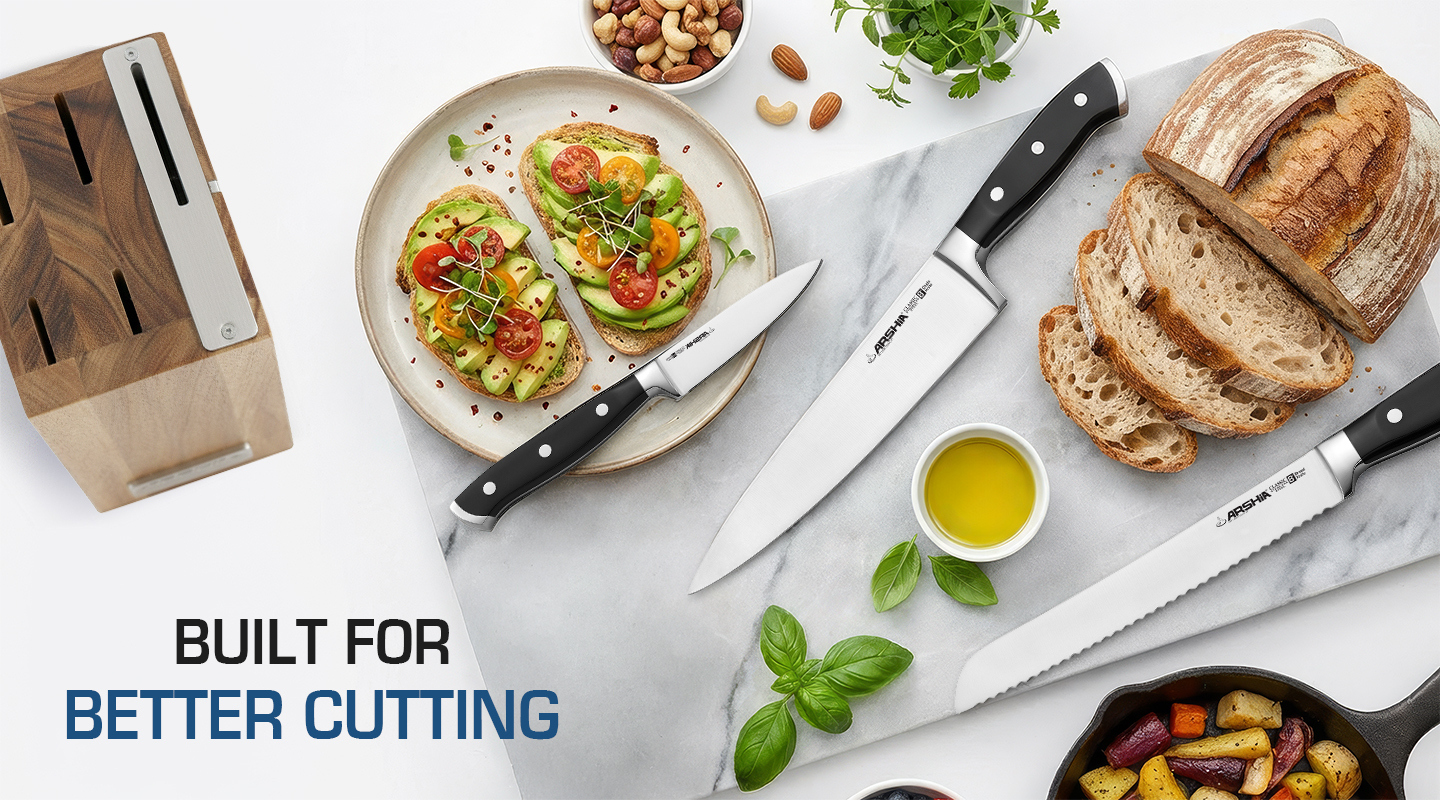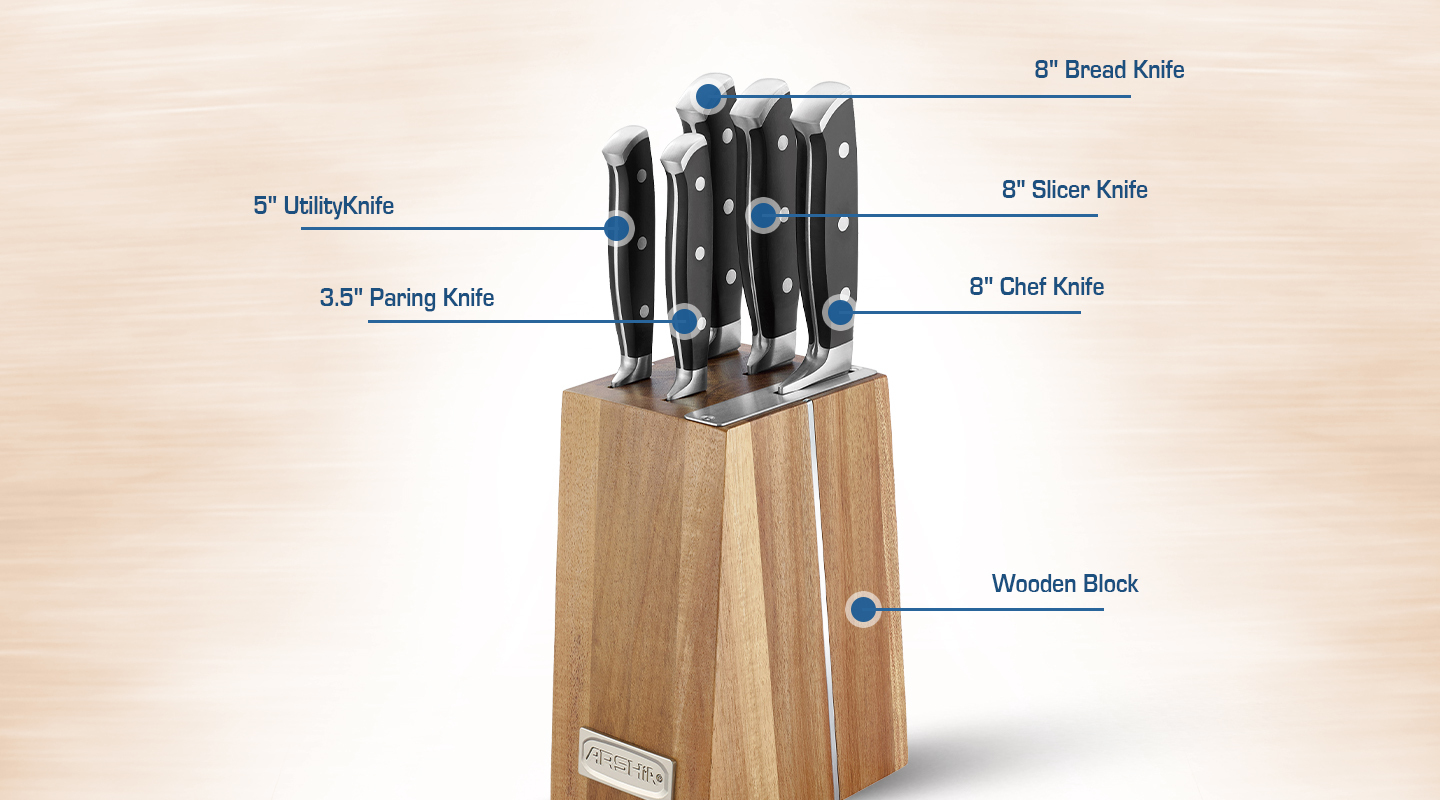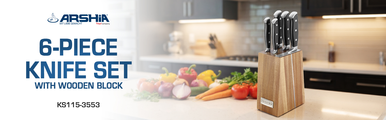 Transform your cooking with the Arshia 6-Piece Knife Set. Crafted for precision and comfort, this set is your kitchen companion for slicing, chopping, and prepping. From delicate herbs to hearty meats, each knife tackles every task with ease, all neatly stored in a stylish block.