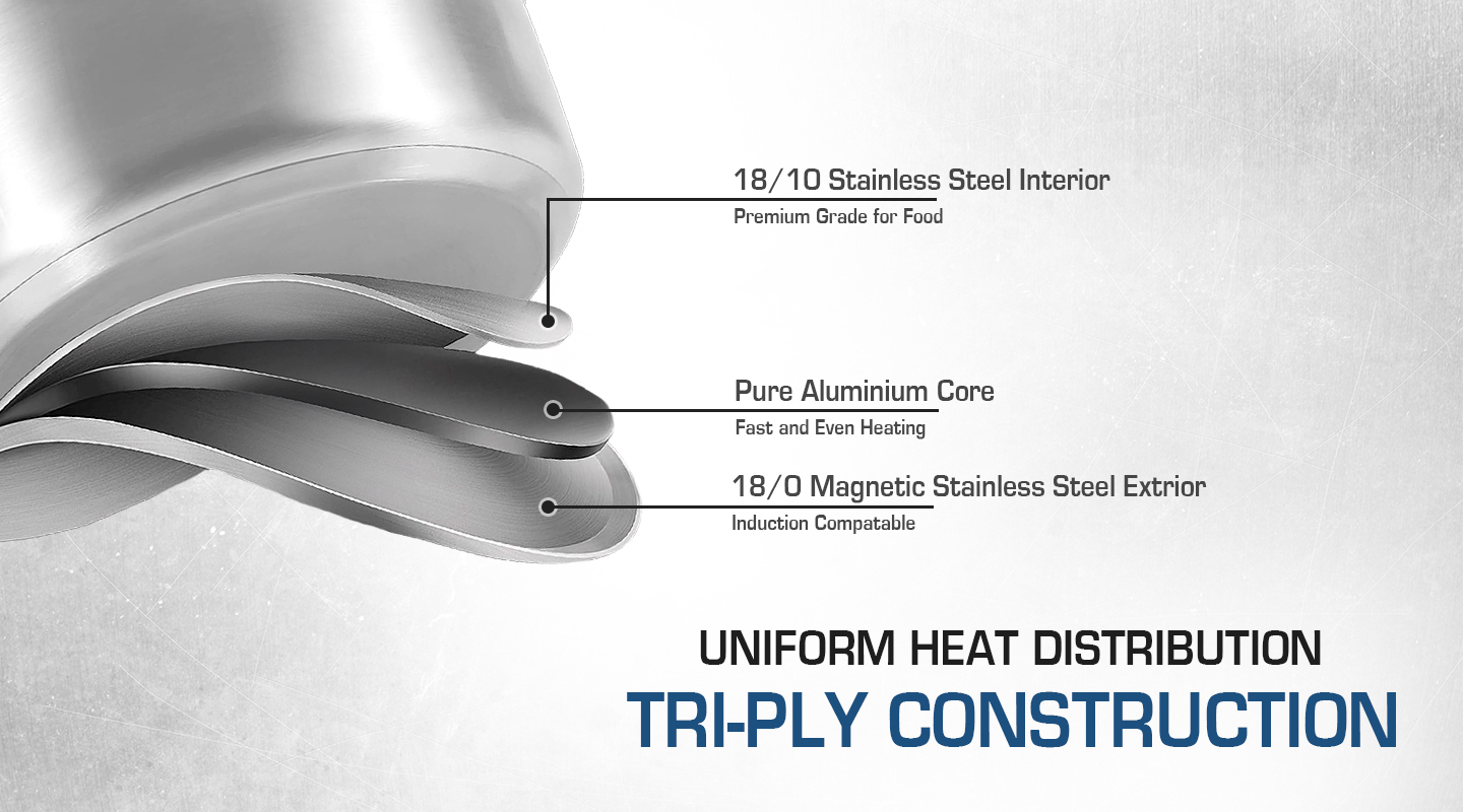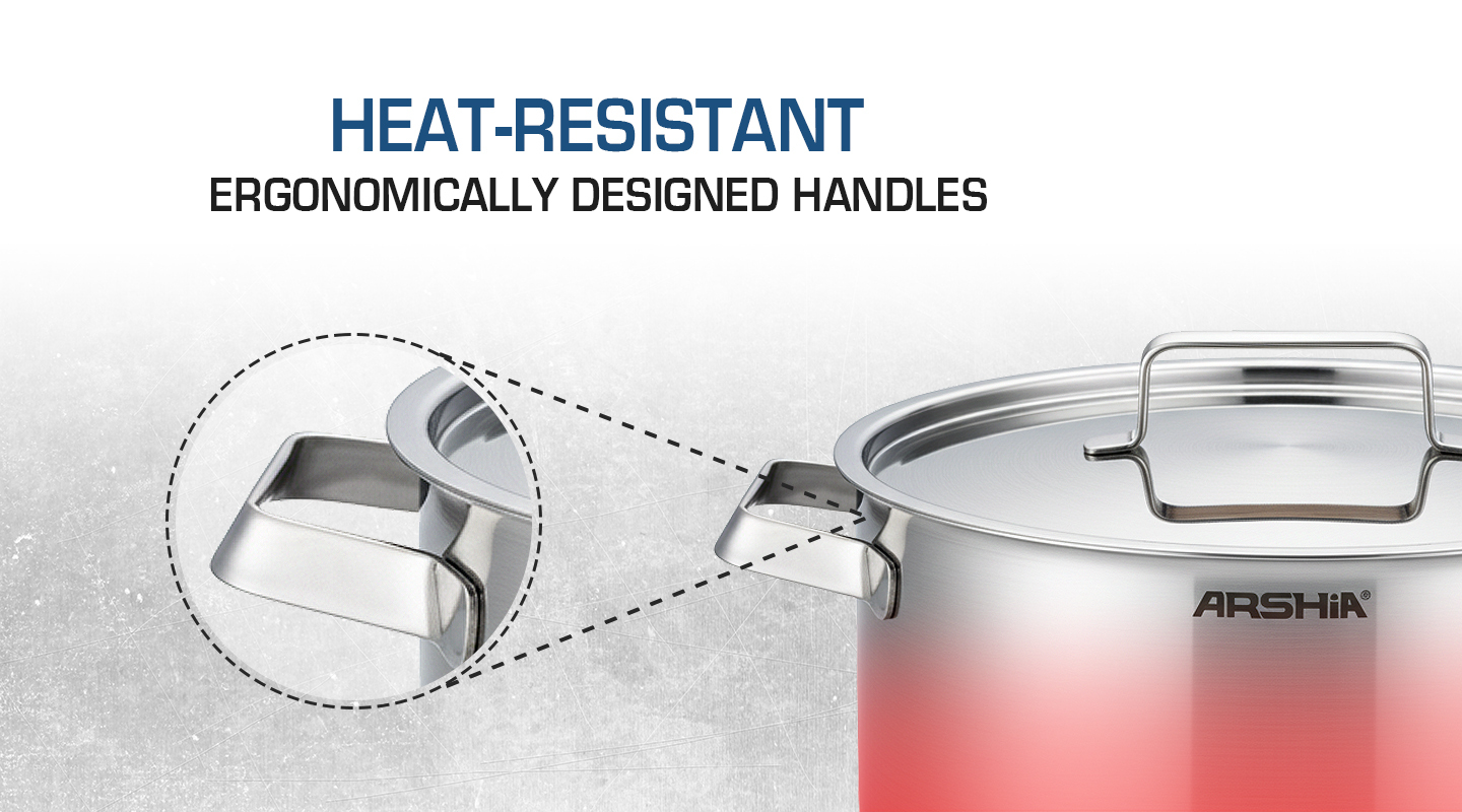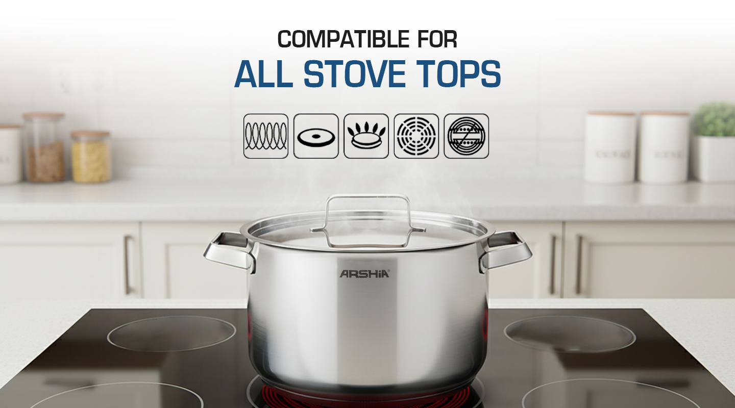 Transform your cooking experience with the Arshia 8pcs Stainless Steel Cookware Set. Made from Stainless Steel 18/0 for superior durability, this set delivers uniform heat distribution with its 3-layer compound bottom. Combining superior quality materials and an elegant design, it's perfect for all stovetops and every cooking need.
