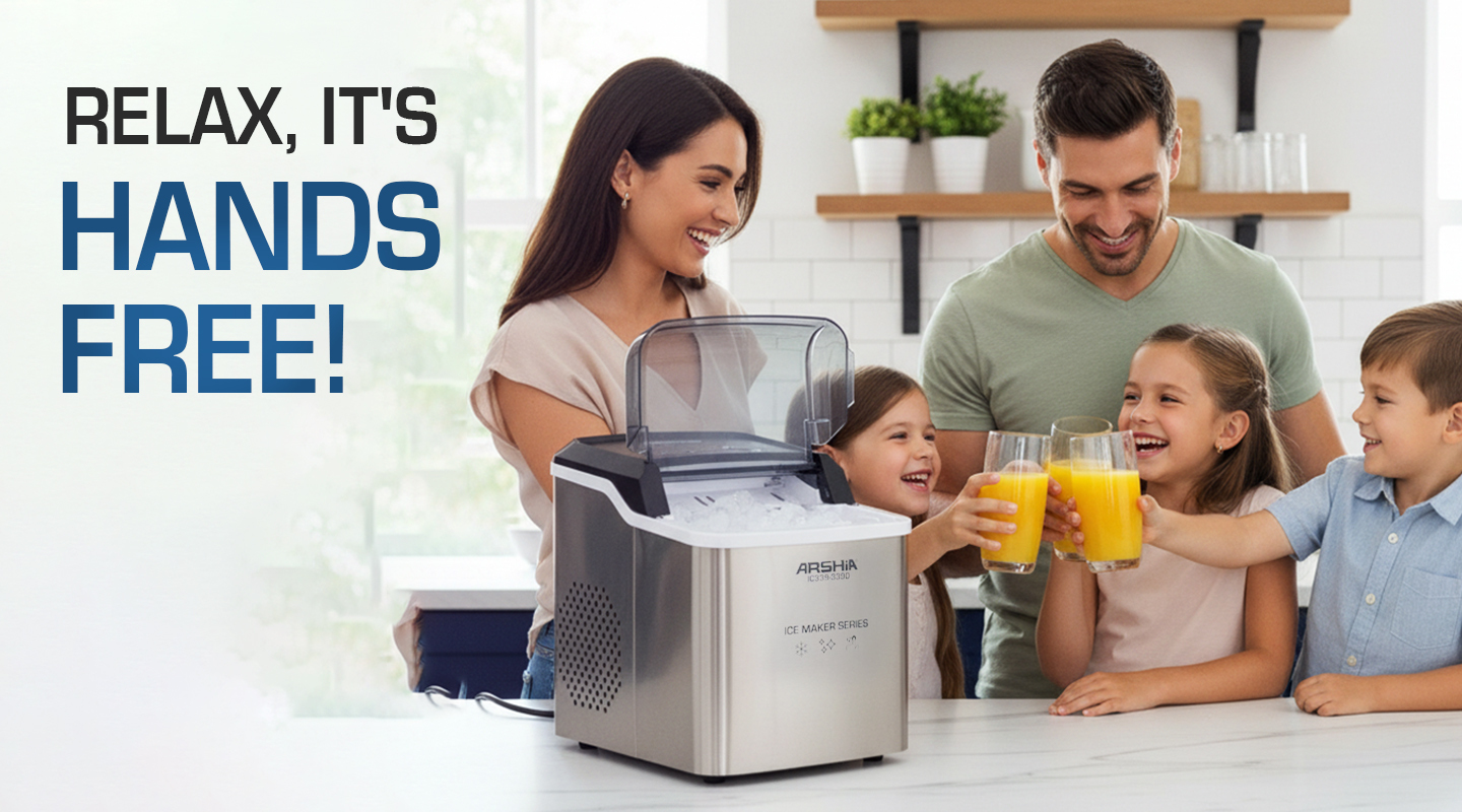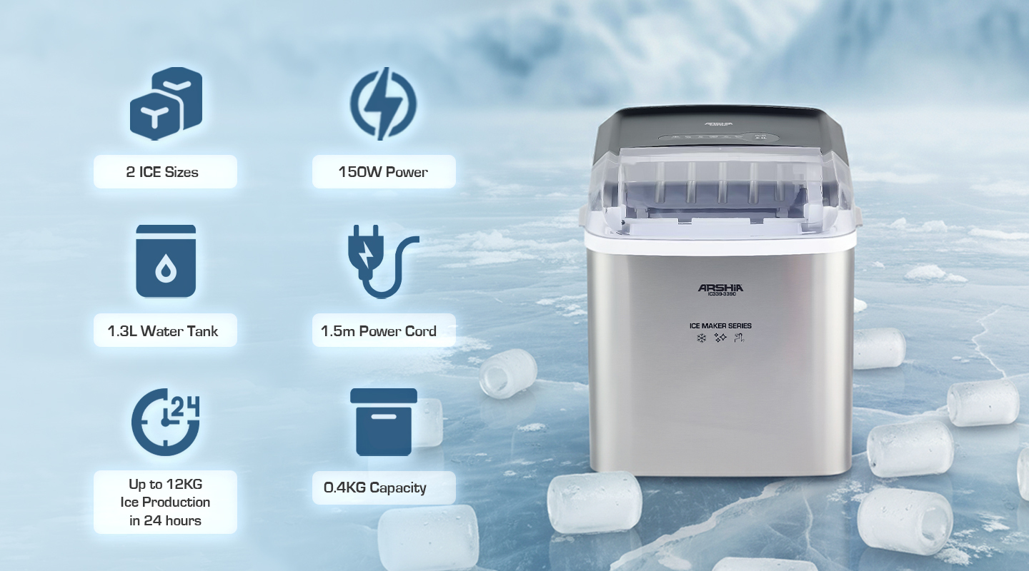 From refreshing drinks to staying cool through the warmer days, the Arshia Ice Maker brings ease and convenience to your daily routine. Compact, fast, and easy to use—perfect for gatherings, family moments, or quiet evenings at home.