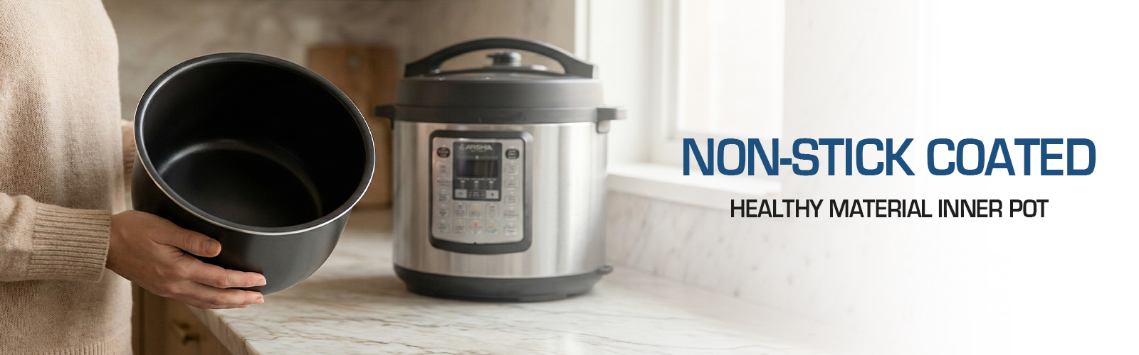 - Nonstick interior pot for easy cleanup.