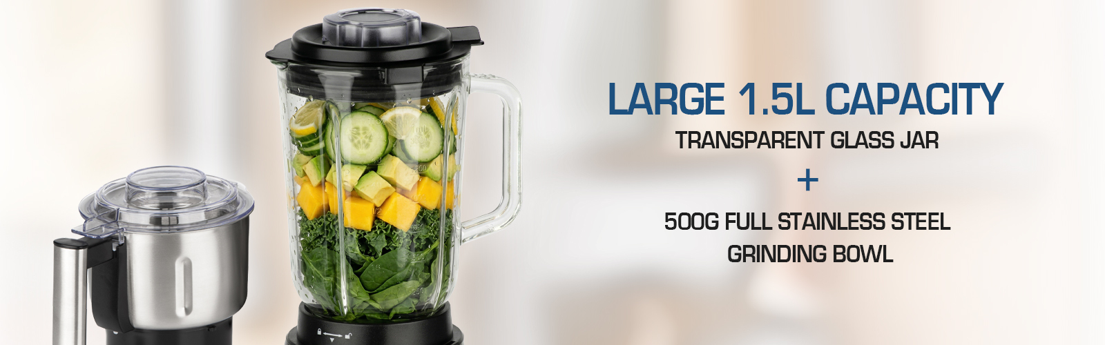 - Large 1.5L capacity transparent glass jar for preparing smoothies, sauces, and soups.